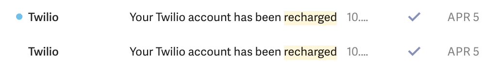 This Thursday I opened my email to find 20+ unread messages from Twilio. They all had the same subject "Your Twilio account has been recharged".
