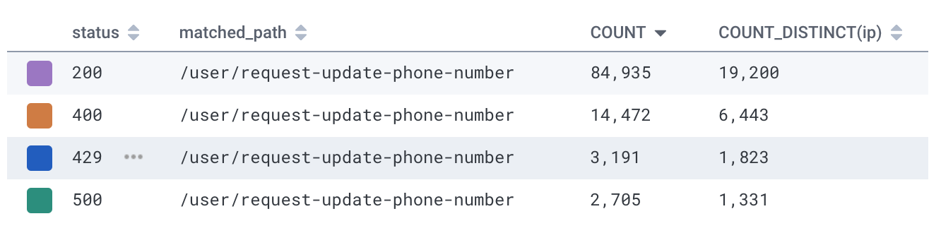 - IP Address — We limit the number of requests by IP address to sensitive routes. Although the attackers worked around this by using many different IPs.